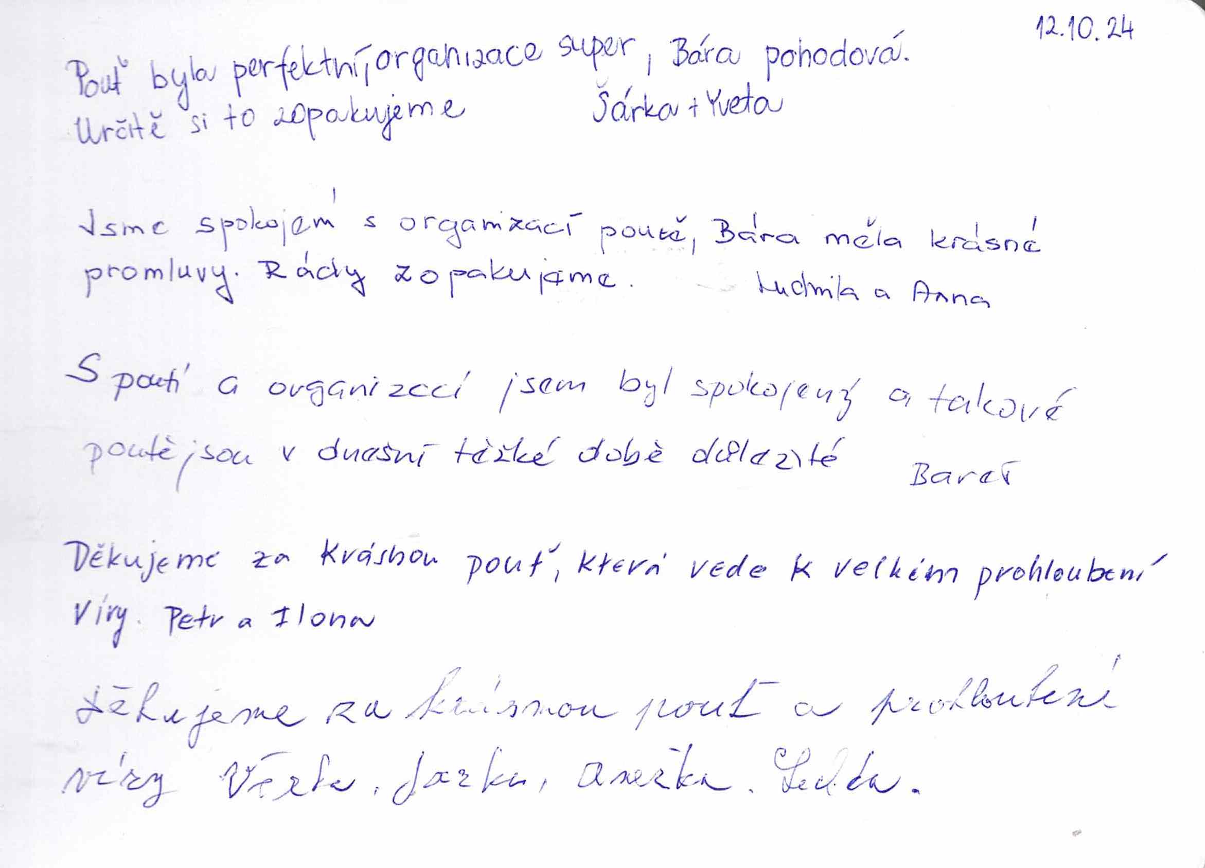 Vynikající pouť, příjemné společenství, krásně naplánovaný program, kde se nikdo necítí sám.