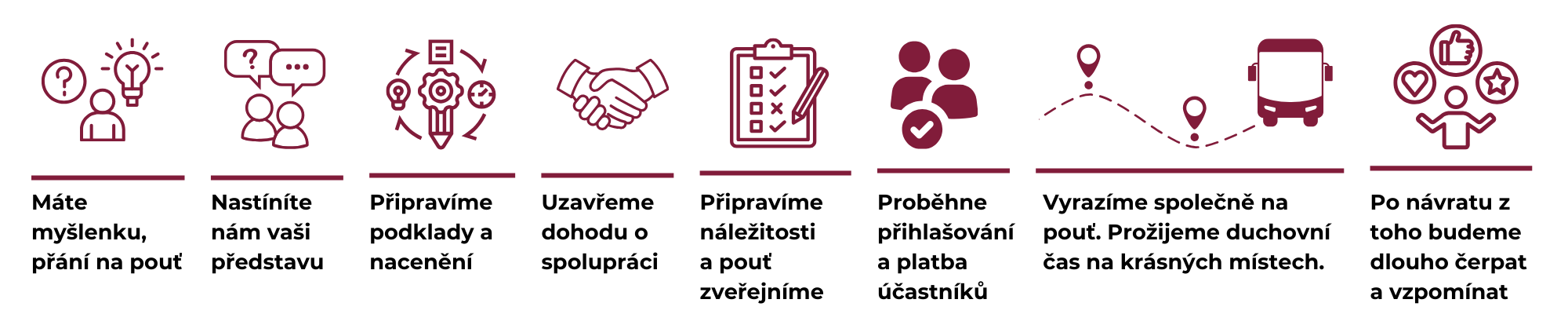 Proto si při organizování pouti zakládáme na poskytování komplexních služeb, abyste mohli pouť vy i vaši spolupoutníci nerušeně prožít.